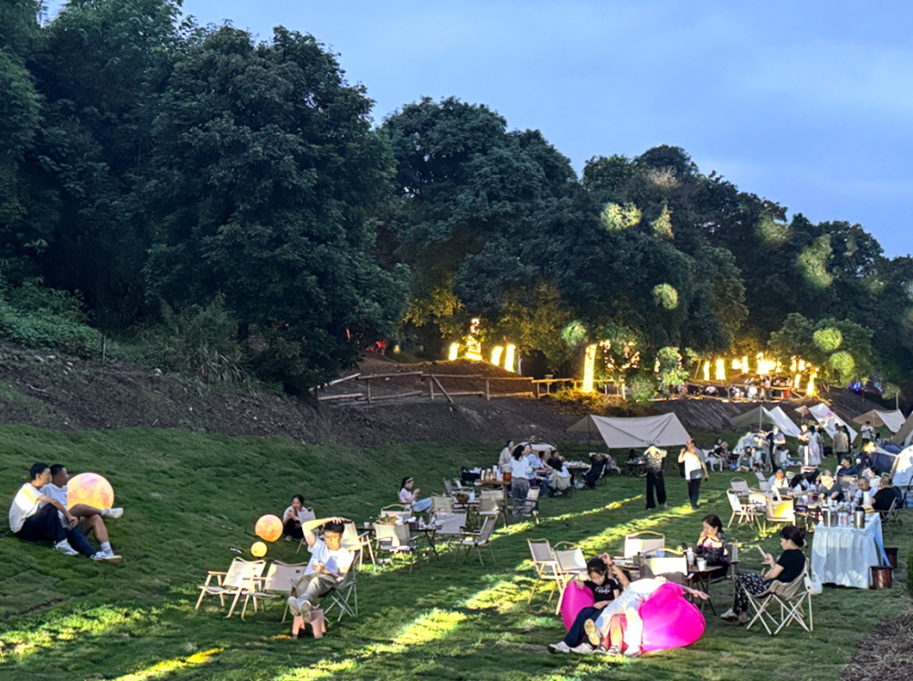 活动期间,精彩乐队演出轮番上阵,动感旋律点燃全场;自助 K 歌环节开放全民参与,让市民变身 “歌手” 释放活力;夜幕降临后的萤火虫放飞环节,更成为整场活动的 “浪漫高潮”,吸引众多市民拍照打卡。凭借独特的创意与优质的体验,桂里萤河露营音乐节吸引参与人次超 9 万,不仅成为国庆假期泸州文旅 “新地标”,更直接带动周边餐饮、零售等消费超 100 万元,为区域文旅经济注入新活力。