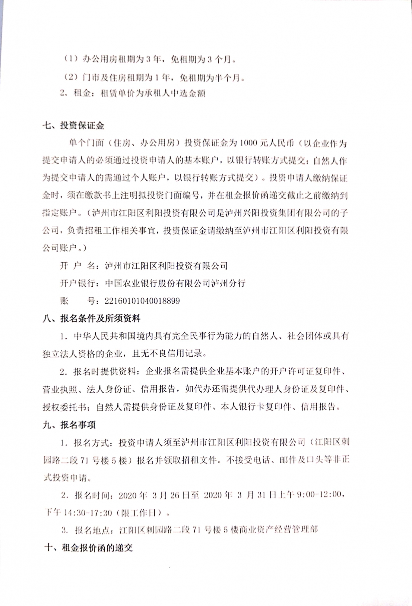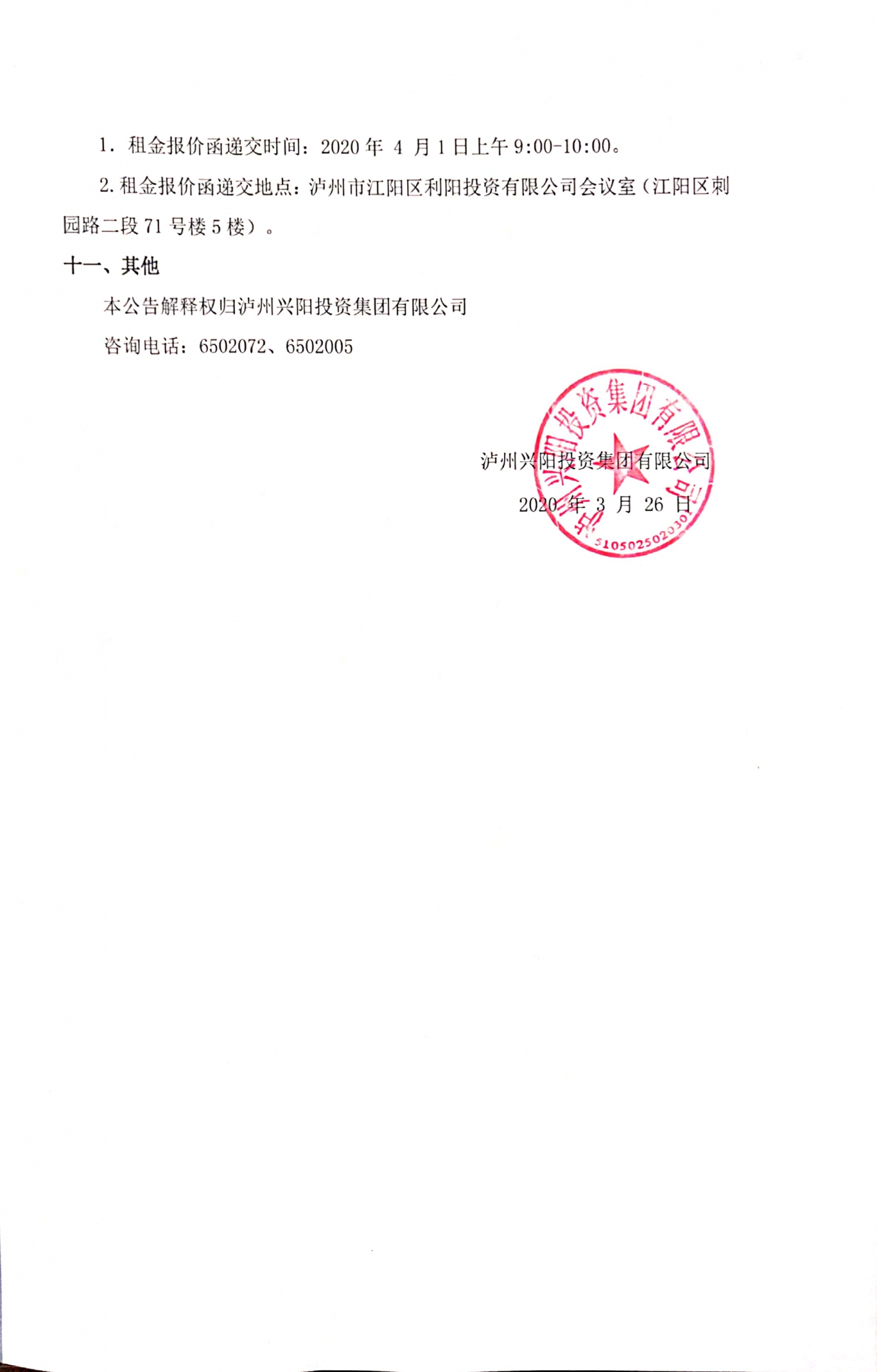 泸州兴阳投资集团有限公司国有资产公开招租公告