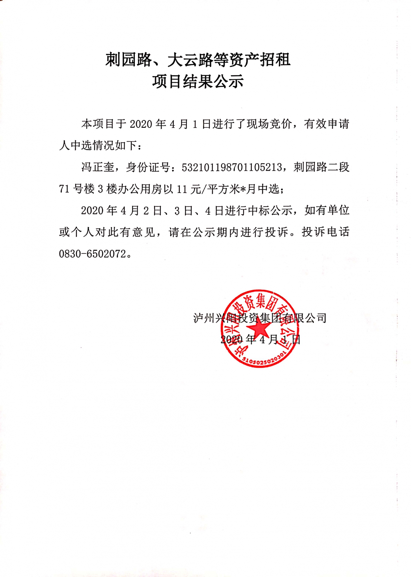 刺园路、大云路等资产招租项目结果公示