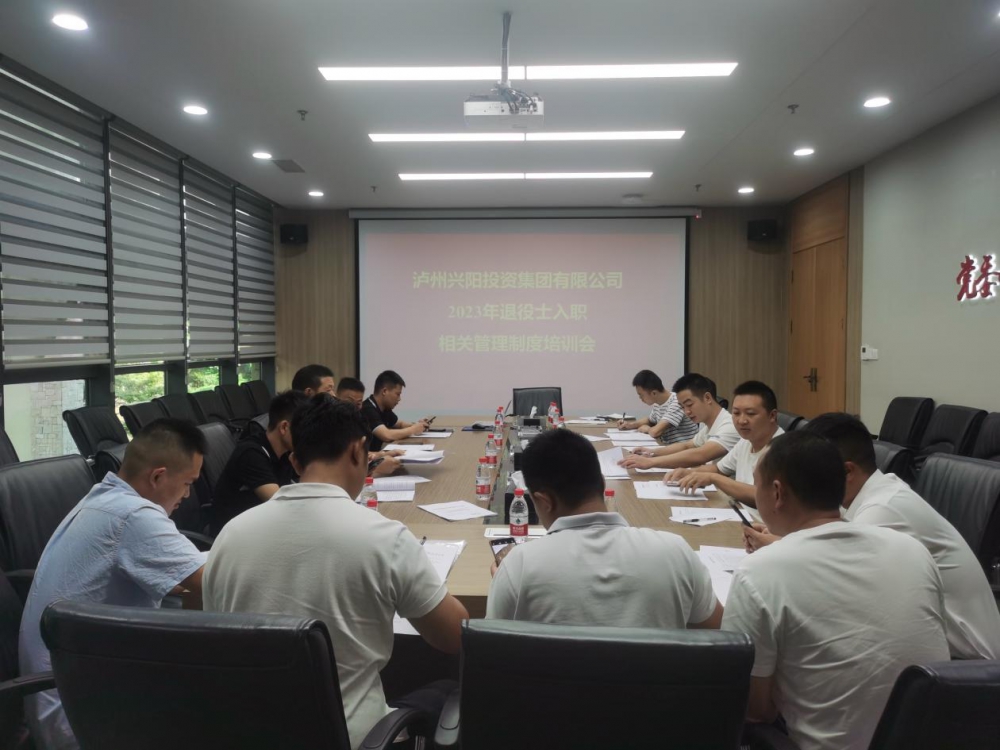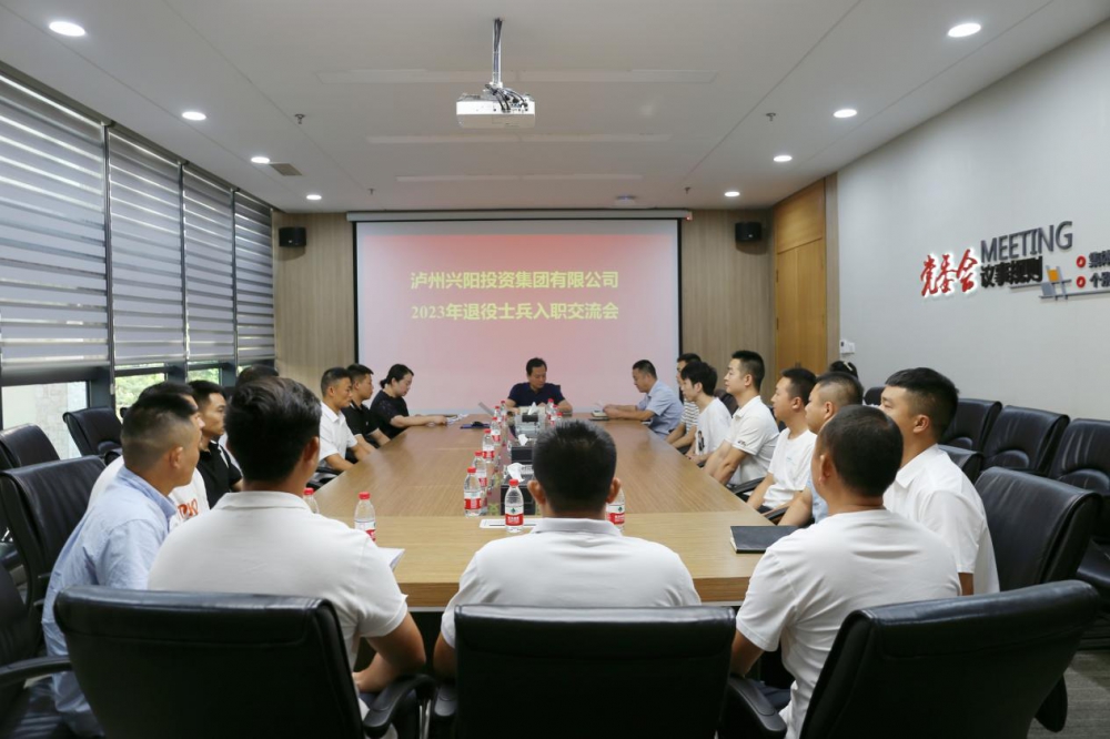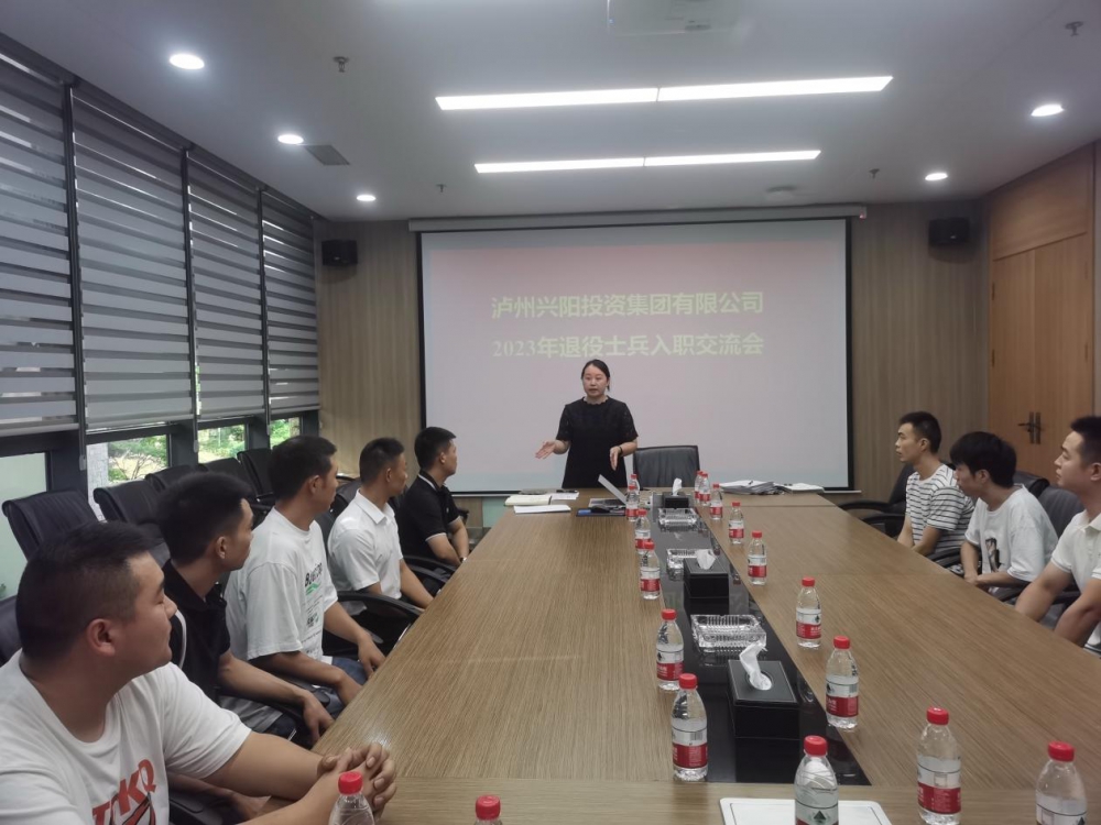 2023年8月31日,兴阳投资集团组织召开退役士兵入职交流会,集团公司党委书记、董事长吴皓出席会议并讲话,集团公司党委副书记、纪委书记余清冰,集团公司人力资源部部长周于又和15名2023年“阳光安置”退役士兵参会。会议由集团公司人力资源部部长周于又主持。