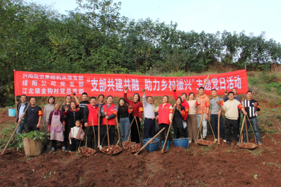 11月16日,兴阳投资集团机关党支部、绿阳党支部组织20余名党员到江阳区江北镇金钩村开展“支部共建共融,助力乡村振兴”主题党日活动。党员志愿者们共挖掘1.5余亩土地,刨挖出红薯2000余斤,并送到金钩村农户倪文明家中。通过这次主题党日活动,展现了党员干部们心系群众、勇于担当的精神风貌,不仅再次提升了党员干部们的党性意识,更是落实主题教育走实走深走心,“践行宗旨为民造福”的有效实践。