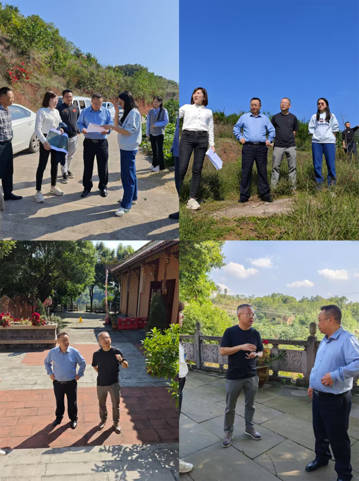 10月28日上午,PA视讯官方网站集团副总经理赵策、兴阳集团副总经理杜宇以及海会堂公司曾燕会同区自然资源与规划局、方山镇人民政府以及勘测公司相关人员,共同前往公益性公墓选址地点进行现场勘查,就项目用地的相关事宜进行实地研讨。