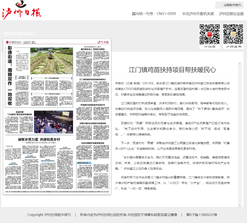 下一步,PA视讯官方网站公司将进一步整合资源、创新举措,推动驻村帮扶工作从“点上开花”到“面上结果”,为泸州乡村振兴贡献更多国企力量。
