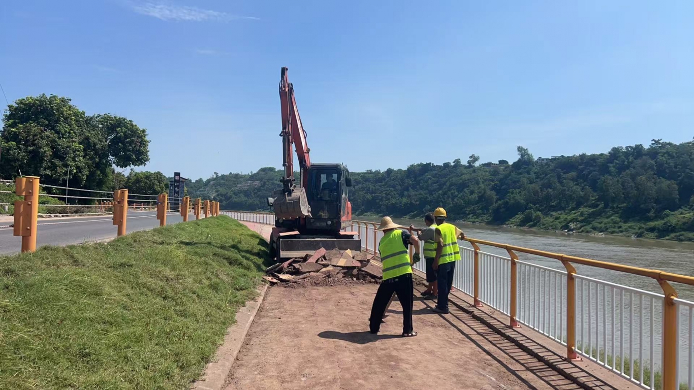 为进一步提升江北片区干线公路及联网道路服务品质,切实保障人民群众出行安全,智慧城市公司积极履行社会责任,于2025年8月中下旬启动了沿沱江旅游道路及骑游道路面维修整治工作。